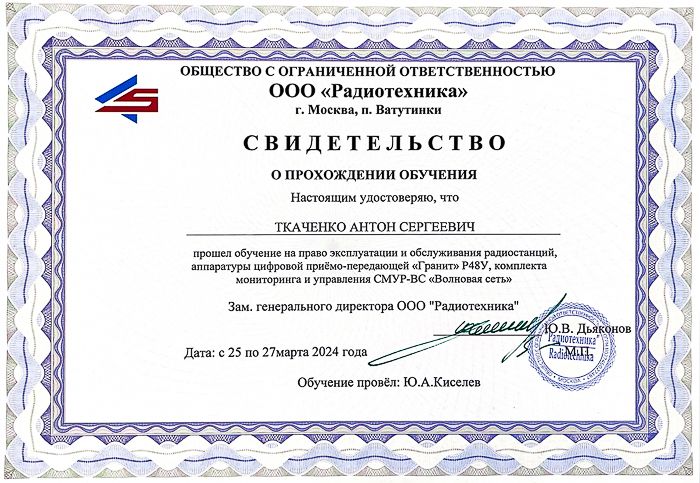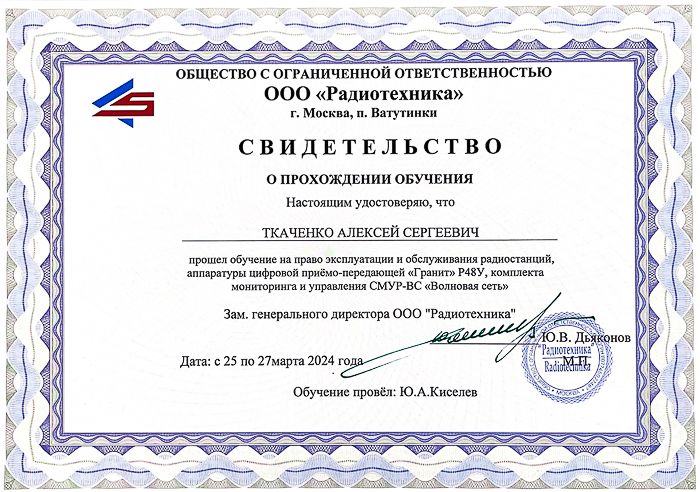 Сотрудники нашей компании, прошли обучение на право эксплуатации и обслуживания комплекса связи "Волновая сеть".